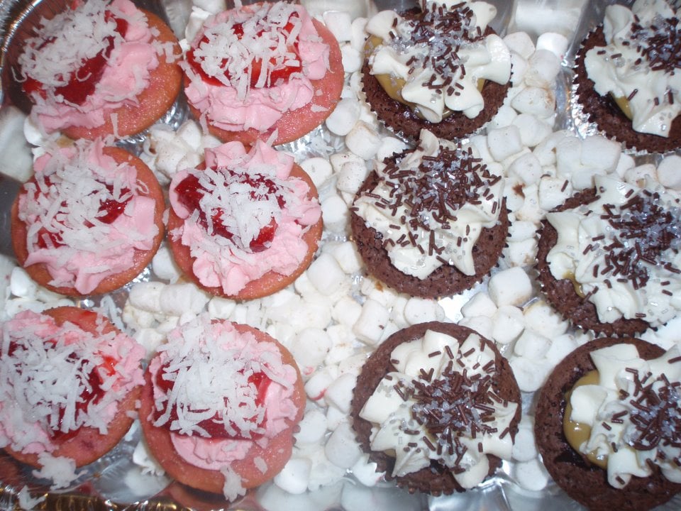 6 Gourmet Fresh Baked Cupcakes; Flavors: Vanilla Cream, Chocolate Cream, Red Velvet Delight, Strawberry Cream, Chocolate Peanut Butter & Lemon CreamContains: Wheat, Milk & Eggs Only the Chocolate Peanut Butter flavor contains peanutsNut-free cupcakes are made in a facility that processes nuts, they do not contain actual nuts.For your healthy & safety, item & flavor(s) are unable to be changed or swapped.